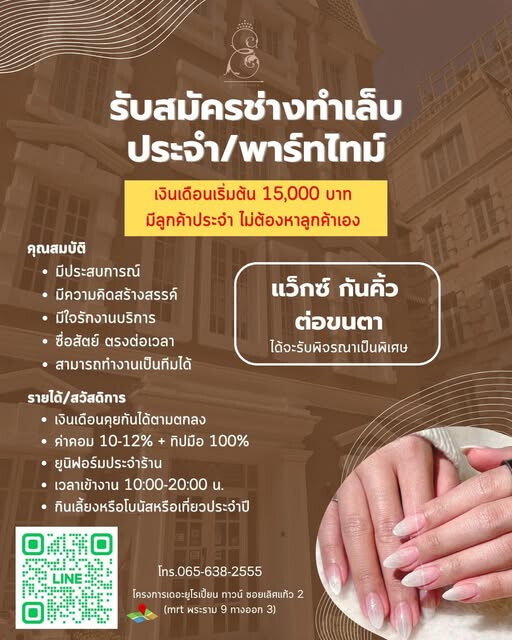รับสมัครช่างทำเล็บประจำ/พาร์ทไทม์