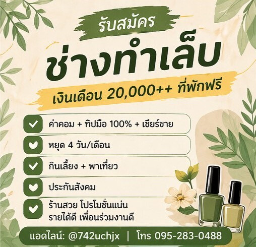 ช่างเล็บ รายได้ 20,000++
