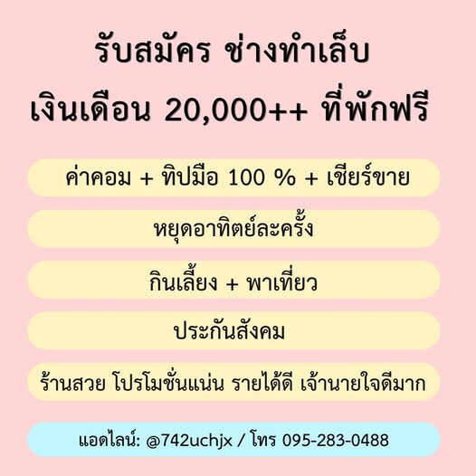 ช่างเล็บ รายได้ 20,000++